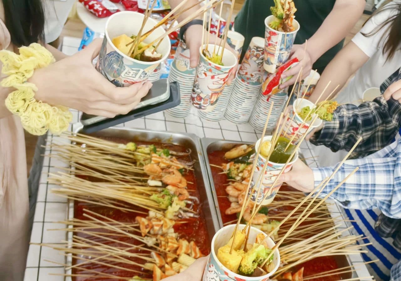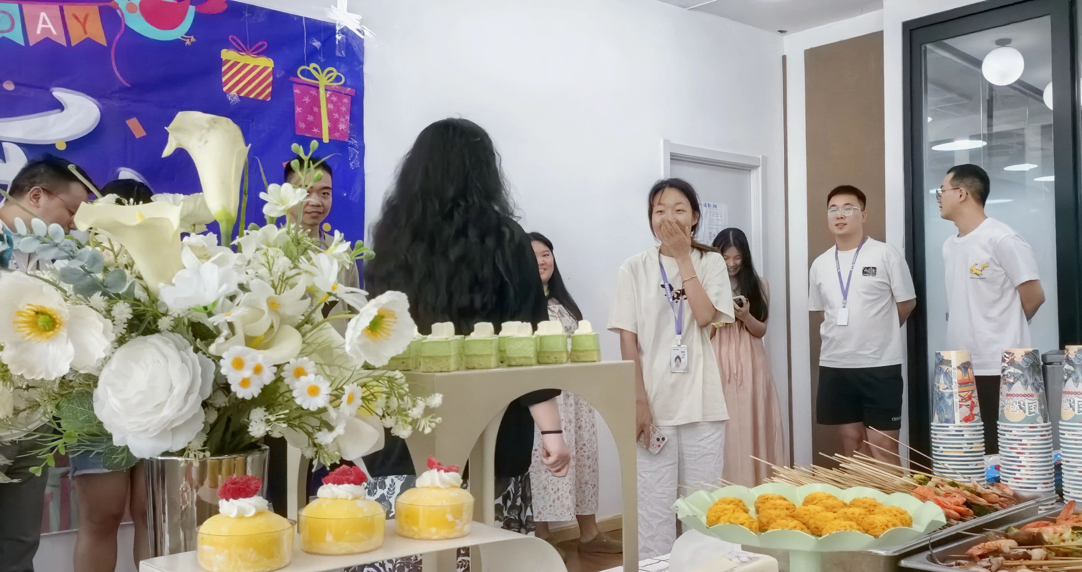 超大超甜的西瓜堆成小山,等着大家一起 “瓜” 分快乐;钵钵鸡江湖里,伙伴们举着签子 “一较高下”;DIY 冰淇淋台成了创意赛场,各种口味的蛋糕排队 “检阅”,专属生日礼物藏着贴心巧思 —— 处处透着公司的用心和对员工的满满宠溺。