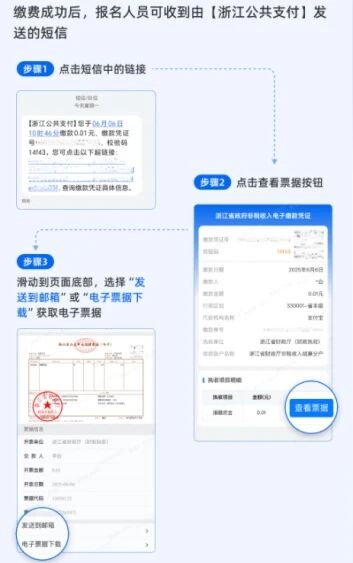 2026年起,浙江省医师资格考试考生完成缴费后,可通过以下方式获取电子发票: