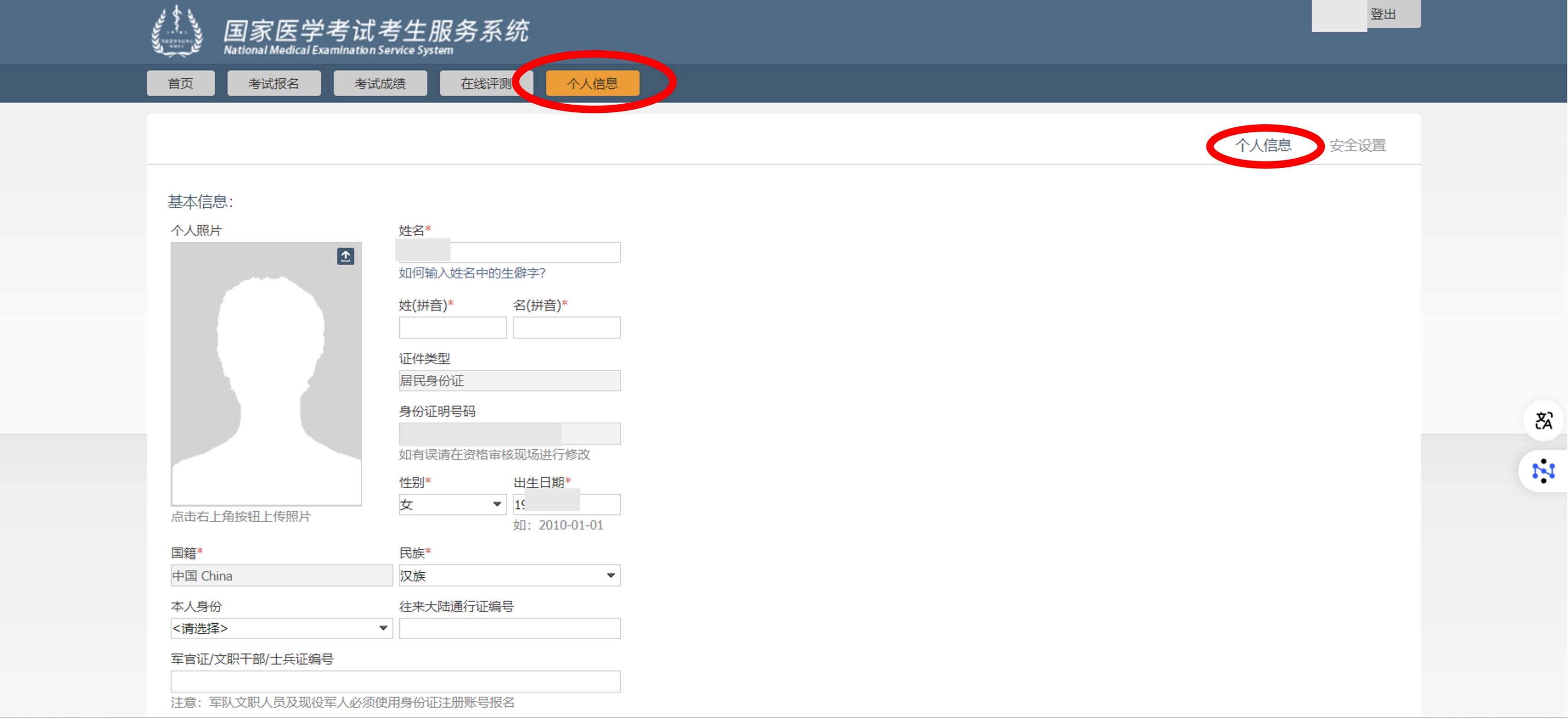 若在个人信息完善中尚未上传照片,则在基本情况一组中需要注意完成照片上传(照片要求为 jpg 格式文件,不要大于 40k)