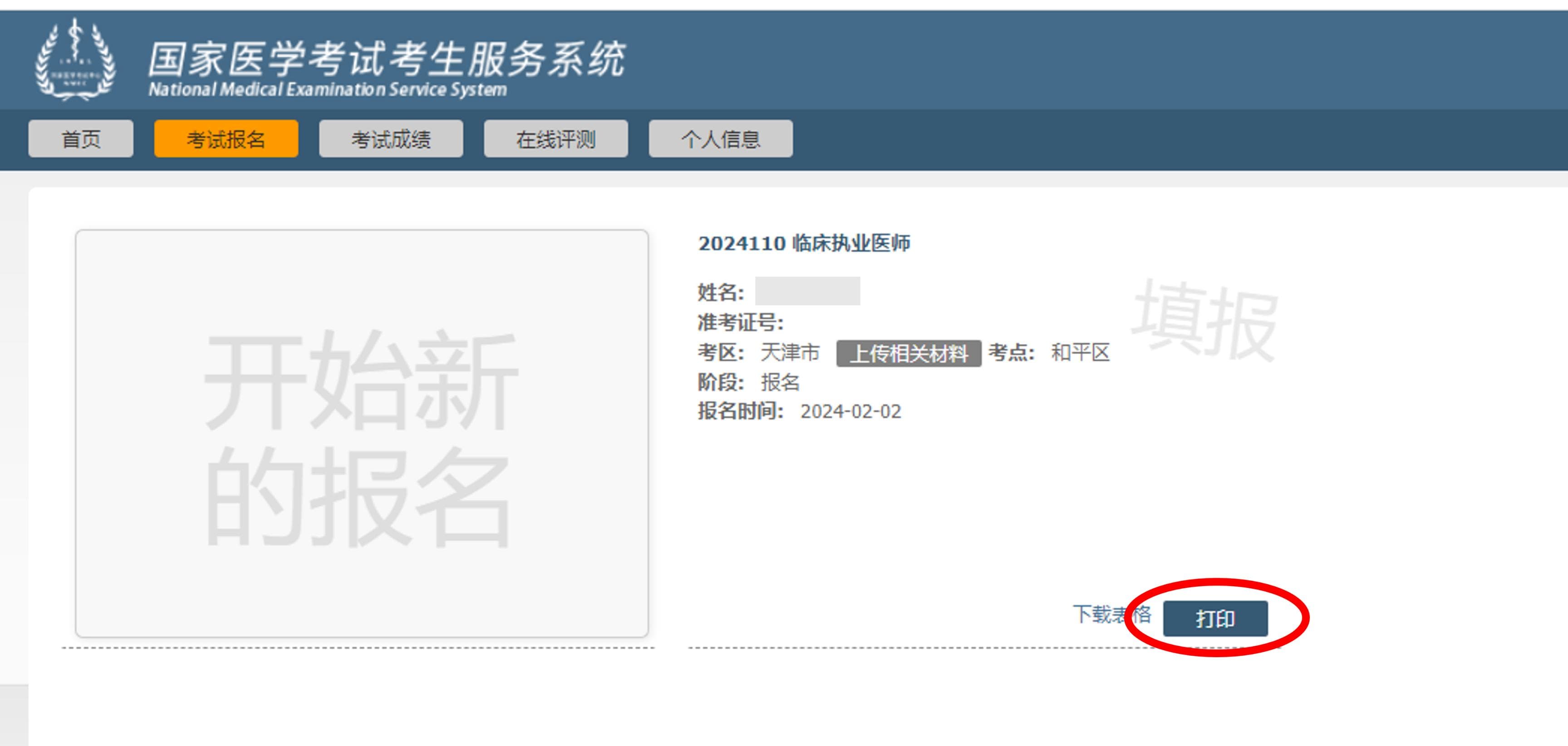特别提醒:如网报成功后再修改报名信息的,需在原报名信息处点击“重新报考”,同时原报名信息被删除。新的信息重新填报后,须及时提交,如未提交,视为报名不成功(即打印不了新的通知单)。重新报考提交成功后方能重新打印《医师资格考试网上报名成功通知单》,原《医师资格考试网上报名成功通知单》无效。