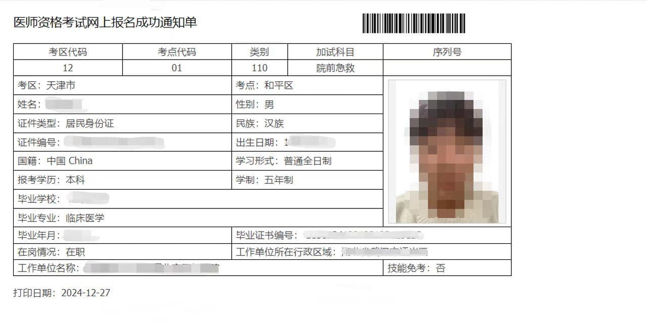 报名成功后,打印《医师资格考试网上报名成功通知单》(如报名成功后进行信息修改的,须重新提交并重新打印报名成功通知单,原网上报名成功通知单无效)。
