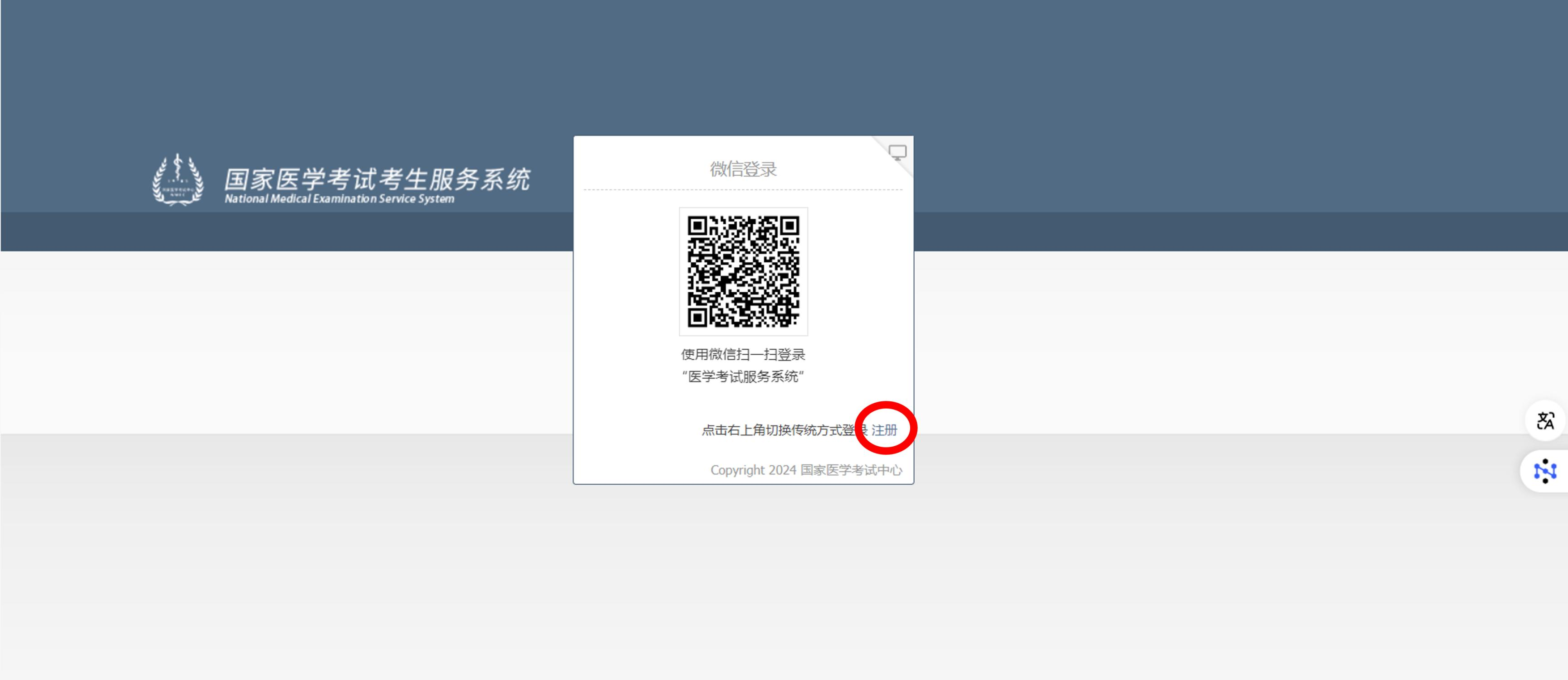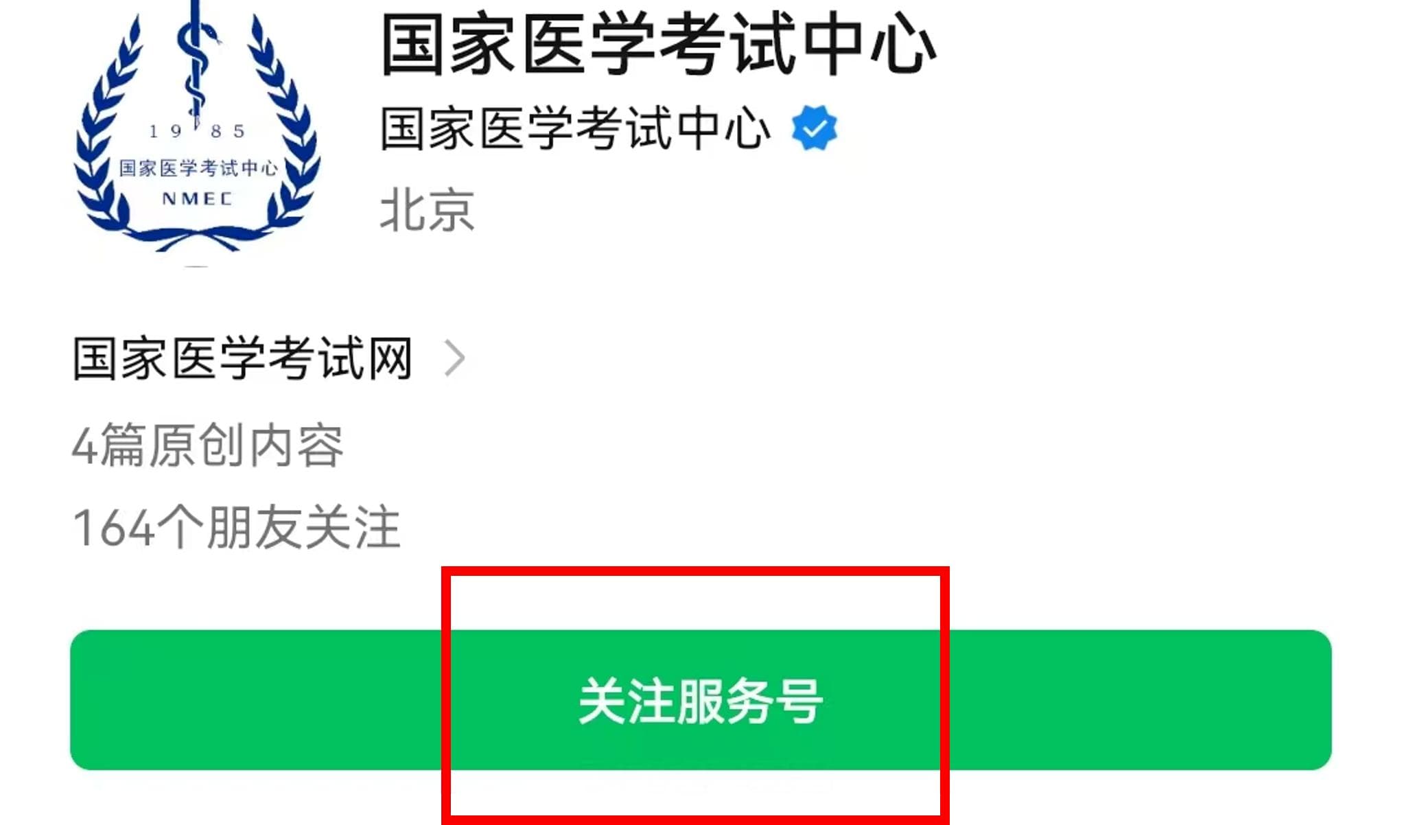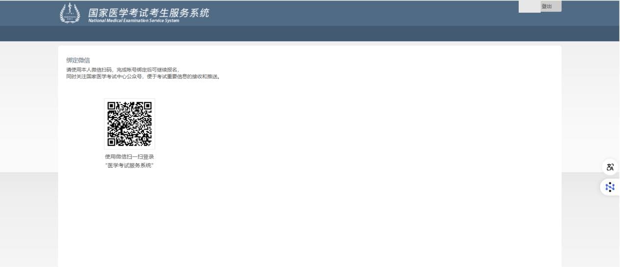 点击考试报名--开始新的报名,微信扫码,完成账号绑定。同时关注国家医学考试中心公众号,以便接收考试公告、成绩查询等考试重要信息。